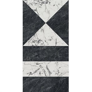 Керамический гранит «Бьянко Неро». Сочетание белого и чёрного мрамора, организованное в крупный геометрический орнамент - смелое интерьерное высказывание, которое точно не останется без внимания. Выразительный дизайн серии керамического гранита вдохновлён отделкой миланских входных групп, которые справедливо считаются одной из визитных карточек столицы Ломбардии. Монохромная гамма, блеск глянцевой поверхности, прямые линии рисунка и разнообразие вариантов выкладки выгодно подчеркнут современный дизайн интерьера.