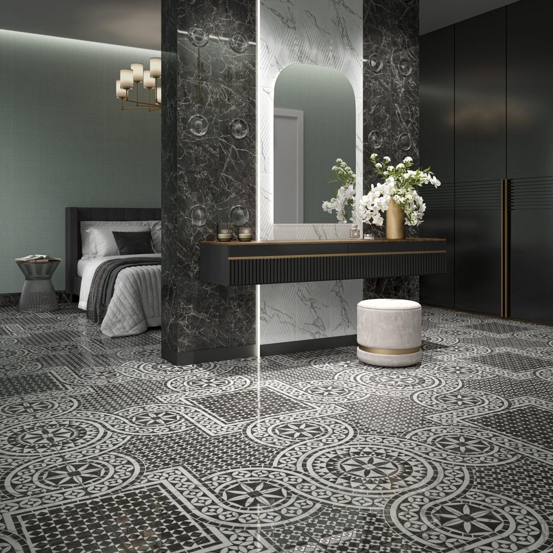 ID160 Декор Коррер наборный чёрный глянцевый 30x60x0,9