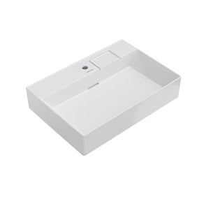 Невидимый слив Beauty Drain смещён из центра чаши раковины к задней стенке, отверстие перелива спрятано в небольшой бокс, закрытый керамической крышкой. Установка раковины возможна как на подвесную тумбу, так и в варианте без мебели.