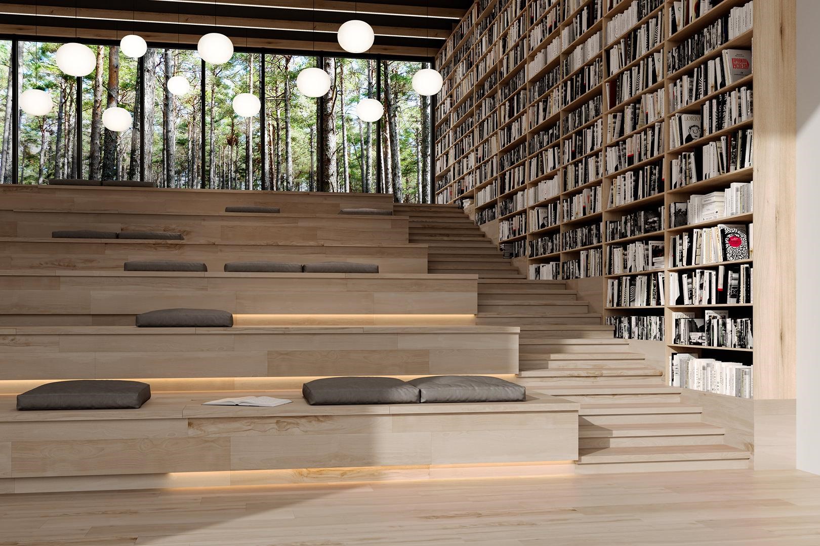 Керамический гранит «Про Вуд». Керамический гранит с увеличенной толщиной 20 миллиметров создан специально для помещений, рассчитанных на высокую нагрузку: это аэропорты, вокзалы, производственные цеха, салоны автомобилей и специальной техники. Его можно использовать для укладки на стяжки и опоры, а также использовать в наружной отделке или для создания фальшполов. Серия может похвастаться не только высокой прочностью материала, но и эстетичным внешним видом, благодаря реалистичной текстуре натурального светлого дерева на матовой поверхности.