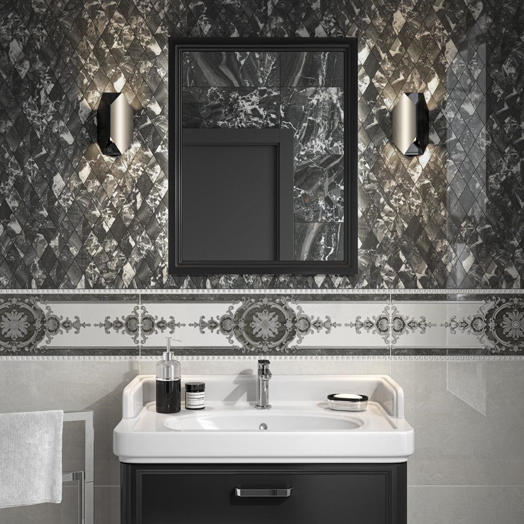 Керамический гранит «Риальто». Богатая и разнообразная серия крупноформатного керамического гранита с текстурой нескольких пород мрамора разных цветов и оттенков. Ванные комнаты и кухни, домашние гостиные и общественные помещения - для любого интерьера в классическом или современном стиле можно подобрать подходящую композицию. Матовая или лаппатированная поверхность на выбор ещё более усиливает вариативность раскладки. Украшением для базовой плитки выступает роскошный наборный розон с орнаментом из разных видов мрамора. Дополнением к серии служит впечатляющий декор в формате МАКСИ-ковра.