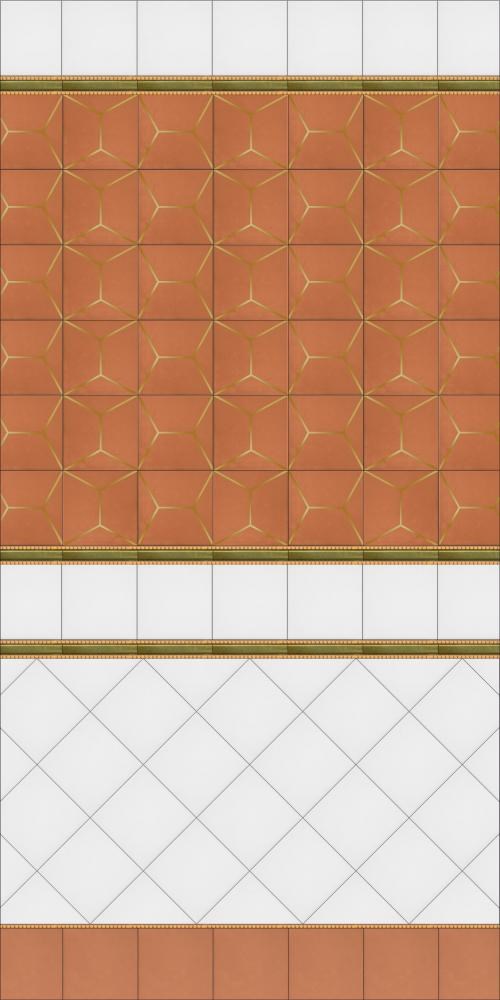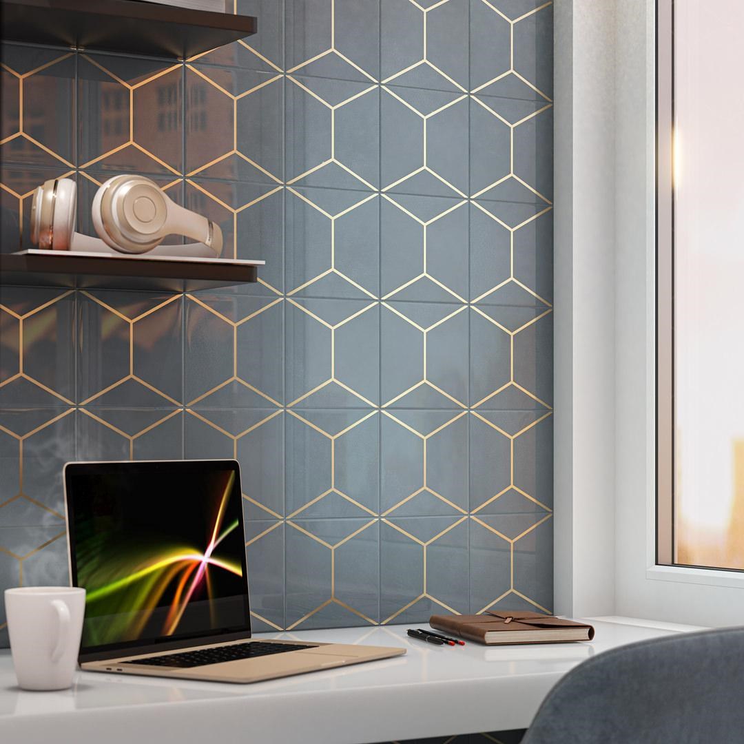 Керамическая плитка «Витраж». Настенная плитка небольшого формата с разнообразной гаммой из пяти цветов: белый, жёлтый, оранжевый, голубой и синий. Серия вдохновлена известной фреской Леонардо да Винчи “Тайная вечеря”. Цвета переложены на современный лад и выполнены в текстуре бетона с глянцевой поверхностью. Золотые линии модного геометрического декора стыкуются любым способом, позволяя создавать интересные паттерны. Совершенно особую атмосферу добавит панно-витраж со стилизованным изображением собора Дуомо. Его цветовое решение хорошо сочетается со всеми цветами базовой плитки.