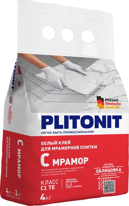 PLITONIT Смрамор клей для мраморной плитки супер белый, класс С1ТЕ, 4 кг